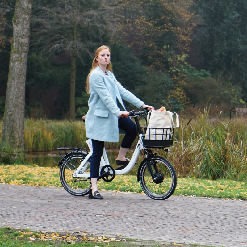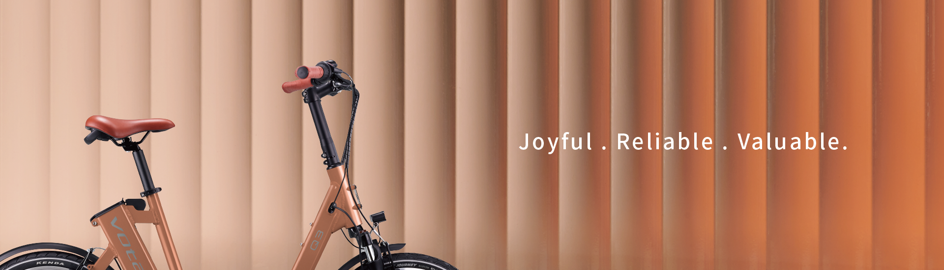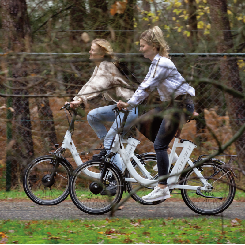 Votani Q3配置避震前叉,克服都市多變路況,提升舒適騎乘體驗。特別加裝半透明質感的鏈蓋,提升騎乘安全性。自由選配個性化置物籃,騎乘更有型。